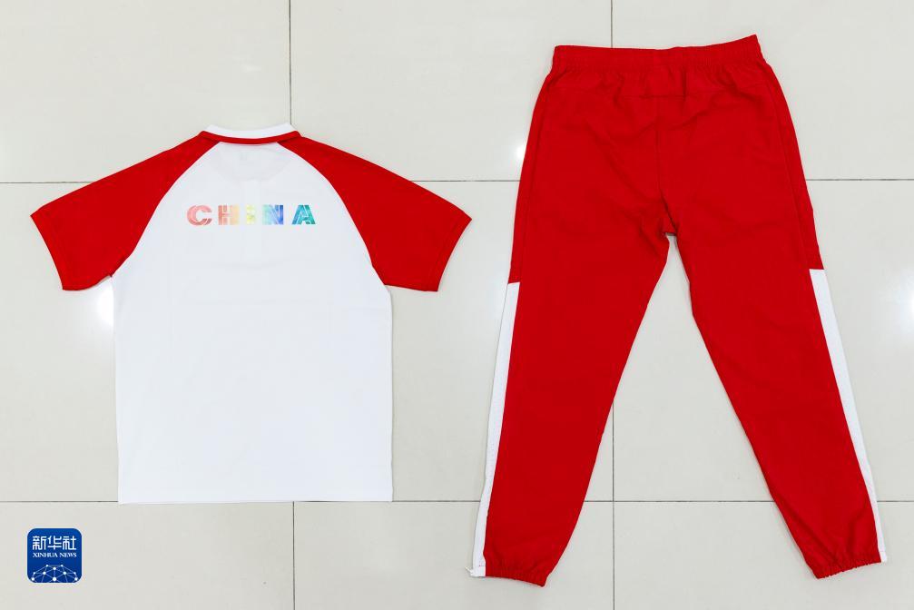 這是7月24日拍攝的第31屆世界大學(xué)生夏季運動(dòng)會(huì )中國代表團成員配發(fā)裝備中的入場(chǎng)服。