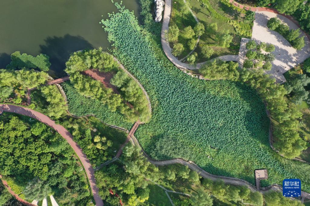 這是白溝新城一處“口袋公園”(7月25日攝,無(wú)人機照片)。