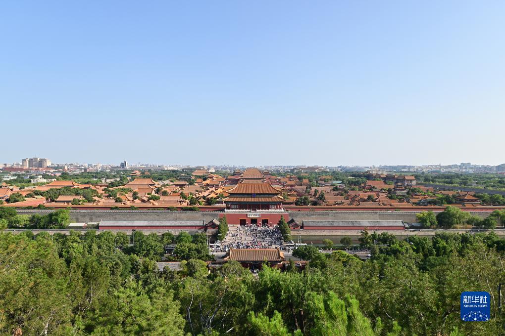 從景山上拍攝的故宮(7月4日攝)。始建于1406年的故宮是世界上現存規模最大、最完整的古代木構宮殿建筑群,位于北京中軸線(xiàn)的中心。1987年聯(lián)合國教科文組織將其列入世界文化遺產(chǎn)名錄。