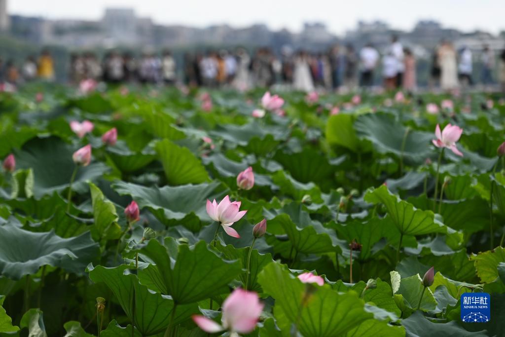 時(shí)值盛夏,杭州西湖景區荷花競相綻放,呈現出“接天蓮葉無(wú)窮碧,映日荷花別樣紅”的美麗景象。