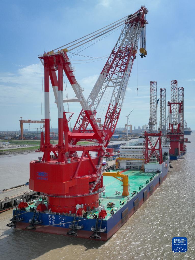 7月25日在振華重工啟東海工碼頭拍攝的4000噸全回轉起重船“海峰2001”(無(wú)人機照片)。
