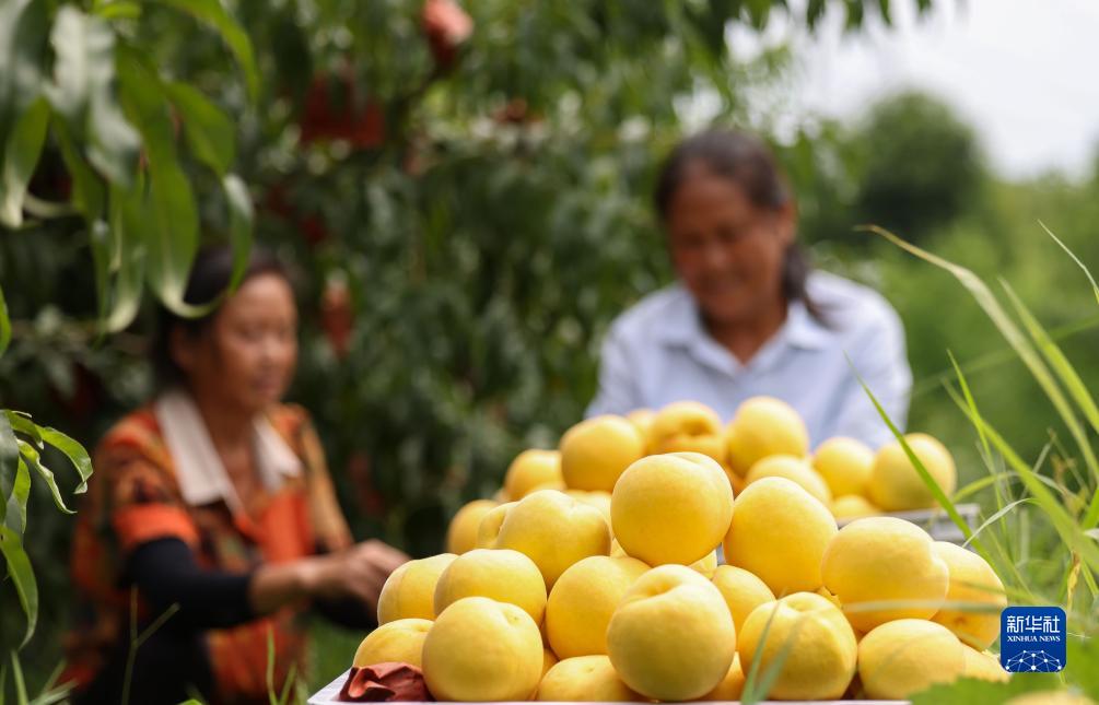 時(shí)下,貴州省銅仁市玉屏侗族自治縣種植的黃桃迎來(lái)收獲季,果農們忙著(zhù)采摘、分揀、搬運黃桃,供應市場(chǎng)。近年來(lái),玉屏侗族自治縣把發(fā)展黃桃產(chǎn)業(yè)列為鄉村振興工作的重要支柱產(chǎn)業(yè),通過(guò)出臺政策支持、東西部協(xié)作資金幫扶、擴大種植面積、發(fā)展精深加工等措施,逐步發(fā)展壯大黃桃產(chǎn)業(yè),促進(jìn)當地農民持續增收。新華社發(fā)(胡攀學(xué) 攝)