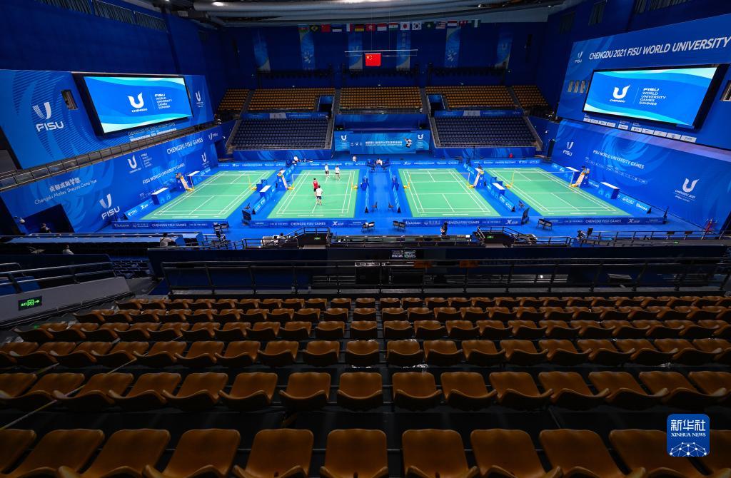 7月25日,中國代表團選手在雙流體育中心體育館進(jìn)行羽毛球賽前訓練。