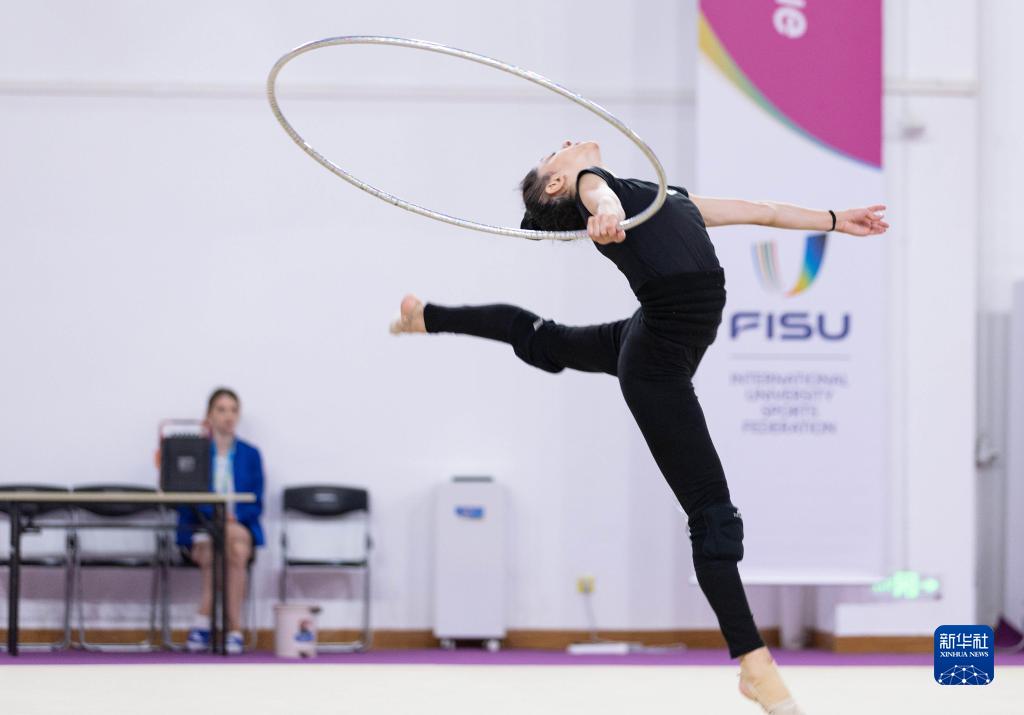 7月25日,阿塞拜疆大學(xué)生藝術(shù)體操隊的選手在成都體育學(xué)院體操館訓練。