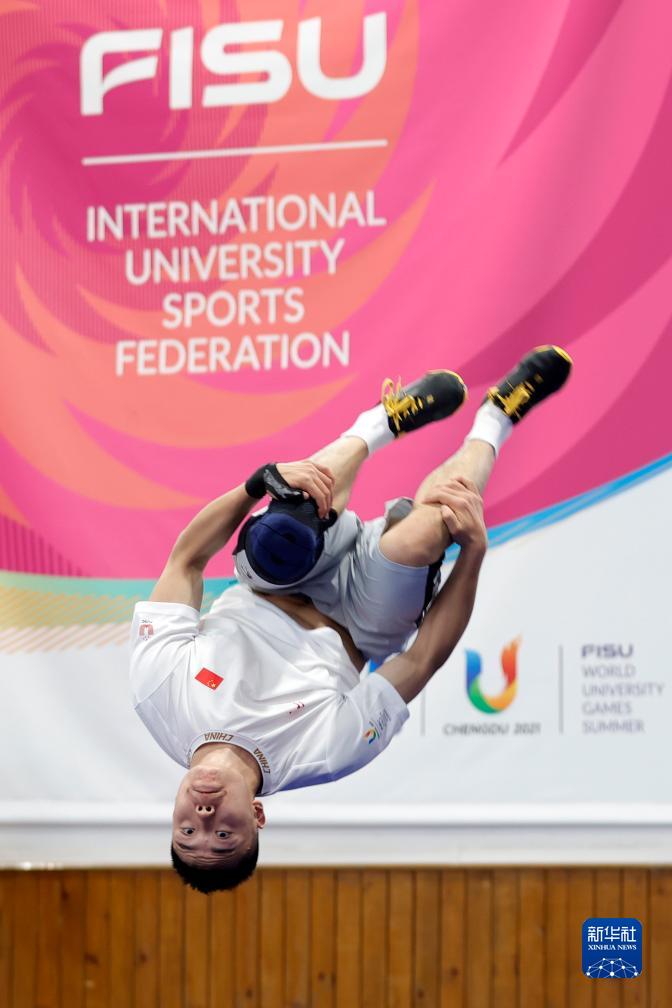 7月25日,參加第31屆世界大學(xué)生夏季運動(dòng)會(huì )武術(shù)比賽的中國選手曹茂園在成都城北體育館訓練。
