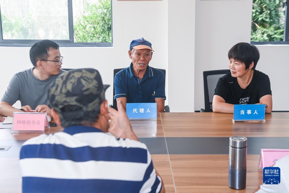 7月26日,在東白湖鎮婁東村新時(shí)代文明實(shí)踐站的文明共富會(huì )客廳內,網(wǎng)格長(cháng)召集村里矛盾雙方當事人以及黨員代表、鄉賢代表、人大代表等成員進(jìn)行宅基地指標糾紛的現場(chǎng)調解。
