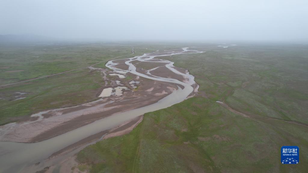 風(fēng)雪彌漫中的當曲濕地(7月24日攝,無(wú)人機照片)。