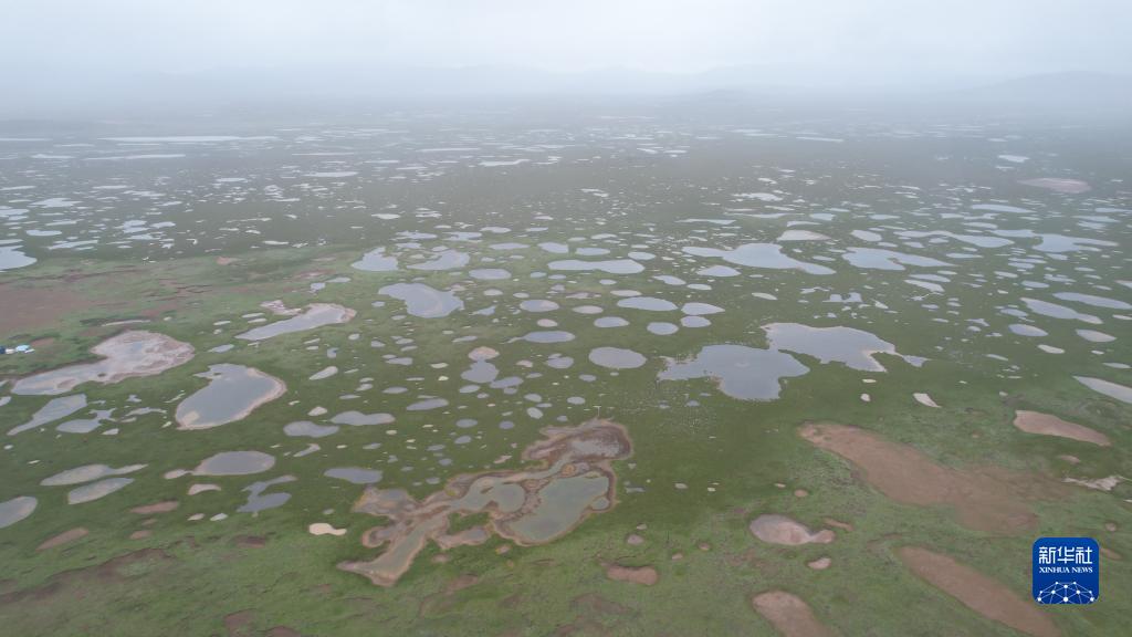 風(fēng)雪彌漫中的當曲濕地(7月24日攝,無(wú)人機照片)。