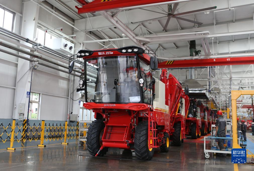 7月26日,在位于濰坊市的濰柴雷沃智慧農業(yè)科技股份有限公司,工人在測試即將下線(xiàn)的玉米收割機。