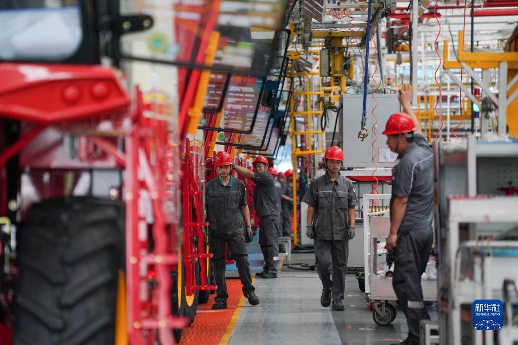 7月26日,在位于濰坊市的濰柴雷沃智慧農業(yè)科技股份有限公司,工人在車(chē)間流水線(xiàn)上忙碌。