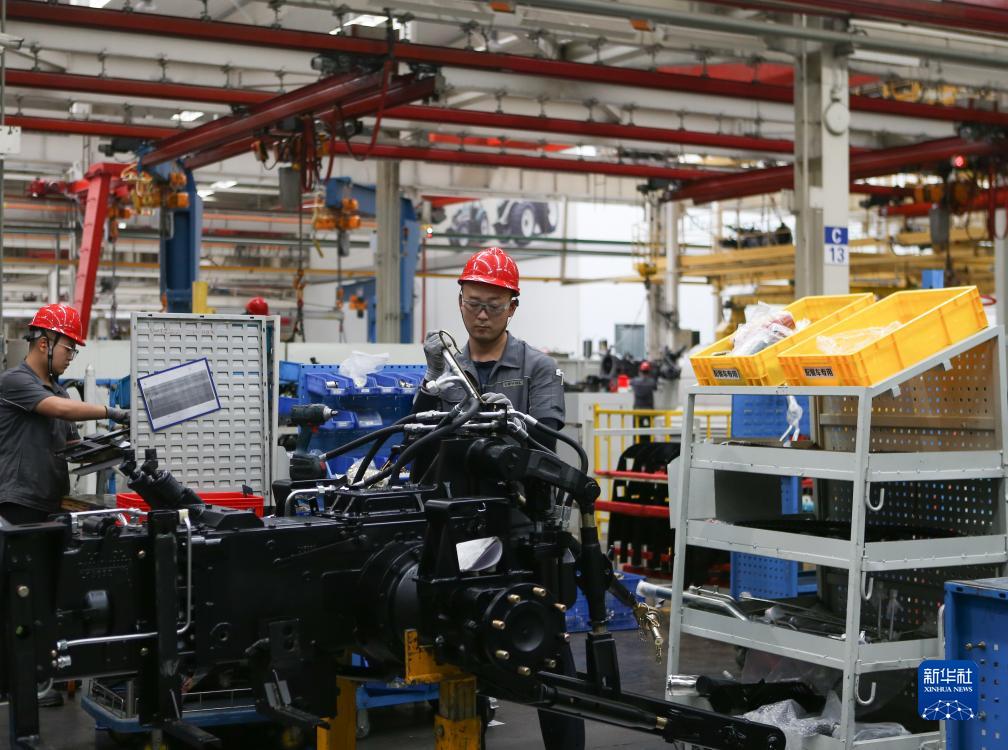 7月26日,在位于濰坊市的濰柴雷沃智慧農業(yè)科技股份有限公司,工人在組裝拖拉機零部件。