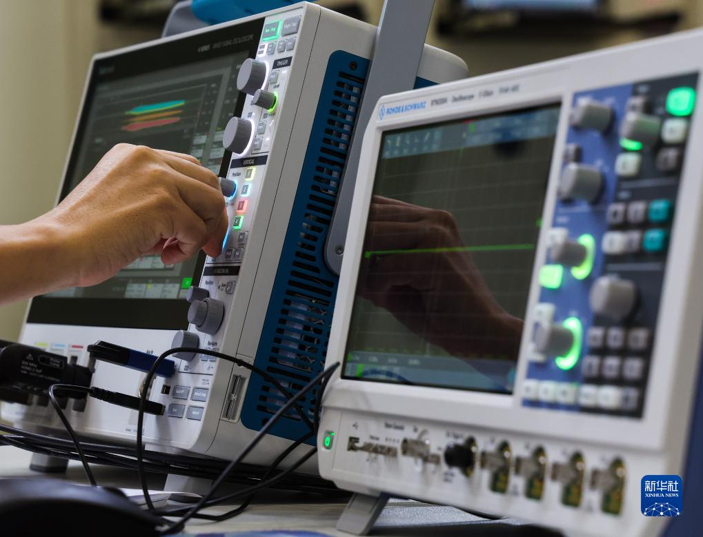 科研人員在中國散裂中子源加速器射頻技術(shù)實(shí)驗室操控儀表(7月18日攝)。