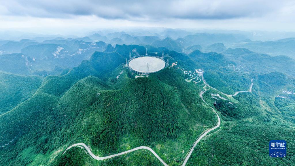 7月26日拍攝的“中國天眼”全景(維護保養期間無(wú)人機拍攝)。