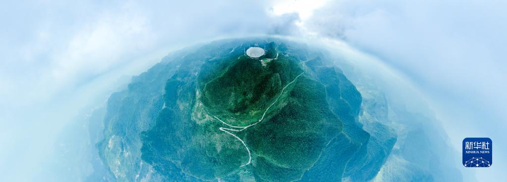 7月26日拍攝的“中國天眼”全景(維護保養期間無(wú)人機拍攝)。