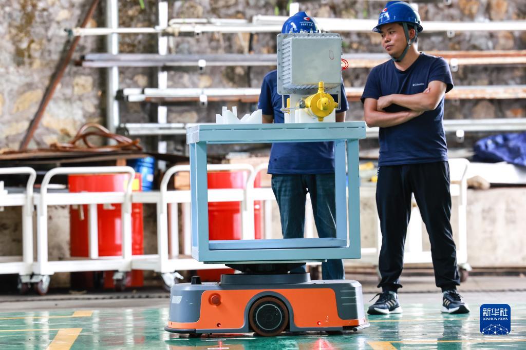 7月25日,工作人員在調試促動(dòng)器自動(dòng)化維護機器人平臺系統。