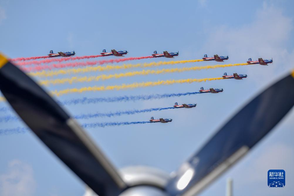 7月26日,在2023年空軍航空開(kāi)放活動(dòng)·長(cháng)春航空展上,空軍航空大學(xué)“天之翼”飛行表演隊進(jìn)行飛行表演。