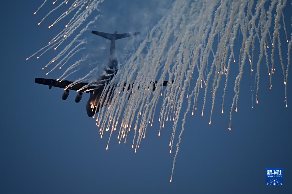7月26日,在2023年空軍航空開(kāi)放活動(dòng)·長(cháng)春航空展上,運油-20釋放紅外干擾彈。