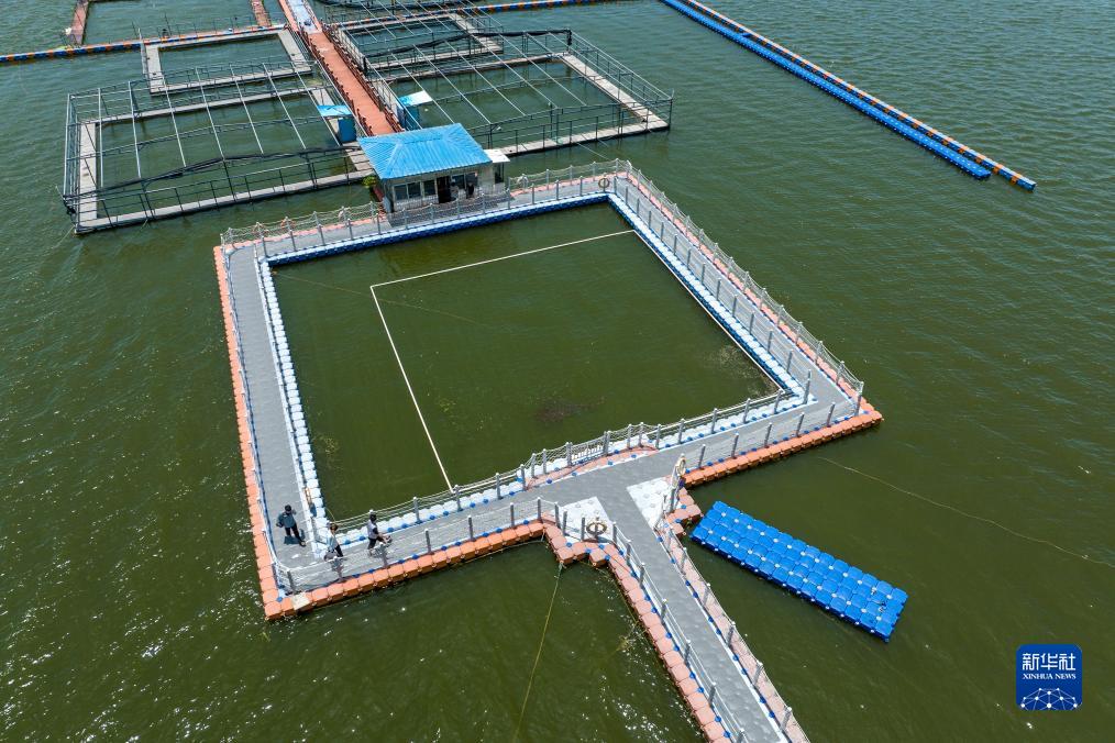 6月27日,中國科學(xué)院水生生物研究所工作人員在湖北長(cháng)江天鵝洲白鱀豚國家級自然保護區忙碌(無(wú)人機照片)。