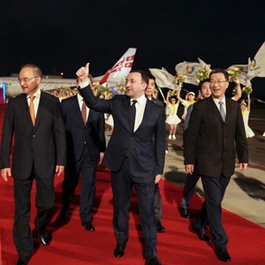 7月26日晚,來(lái)華出席成都大運會(huì )開(kāi)幕式并訪(fǎng)問(wèn)的格魯吉亞總理加里巴什維利抵達四川省成都市。新華社記者 江宏景 攝