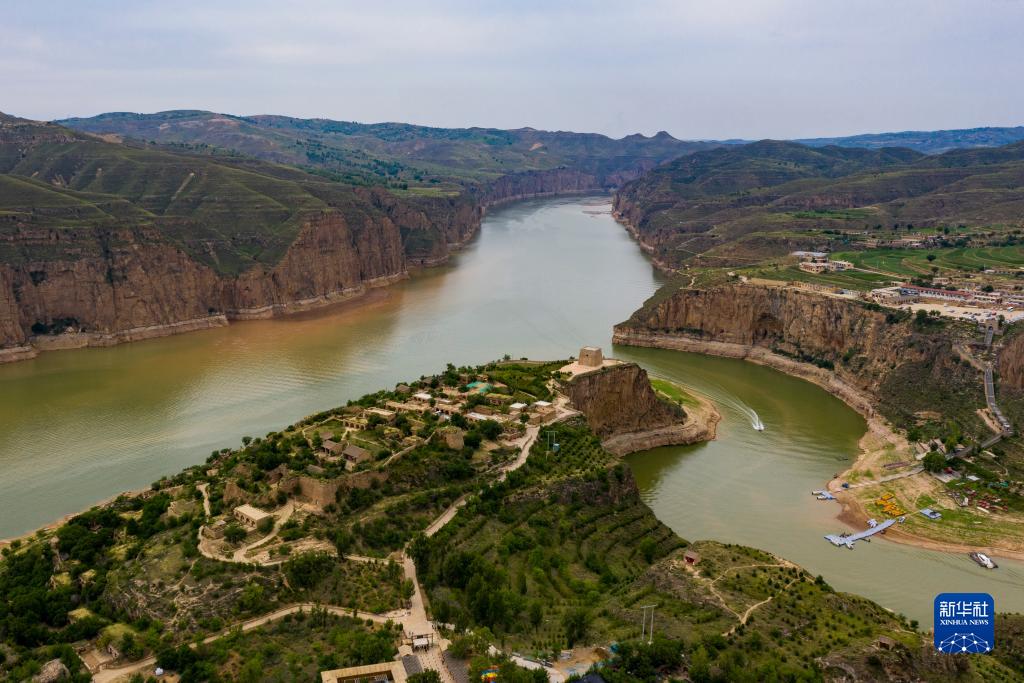 夏日,從空中俯瞰位于山西省和內蒙古自治區交界處的黃河老牛灣,峽谷兩岸壁立千仞,黃河蜿蜒奔流不息,風(fēng)景壯美如畫(huà)。