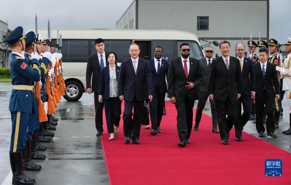 成都大運會(huì )丨來(lái)華出席成都大運會(huì )開(kāi)幕式并訪(fǎng)問(wèn)的圭亞那總統阿里抵達四川省成都市