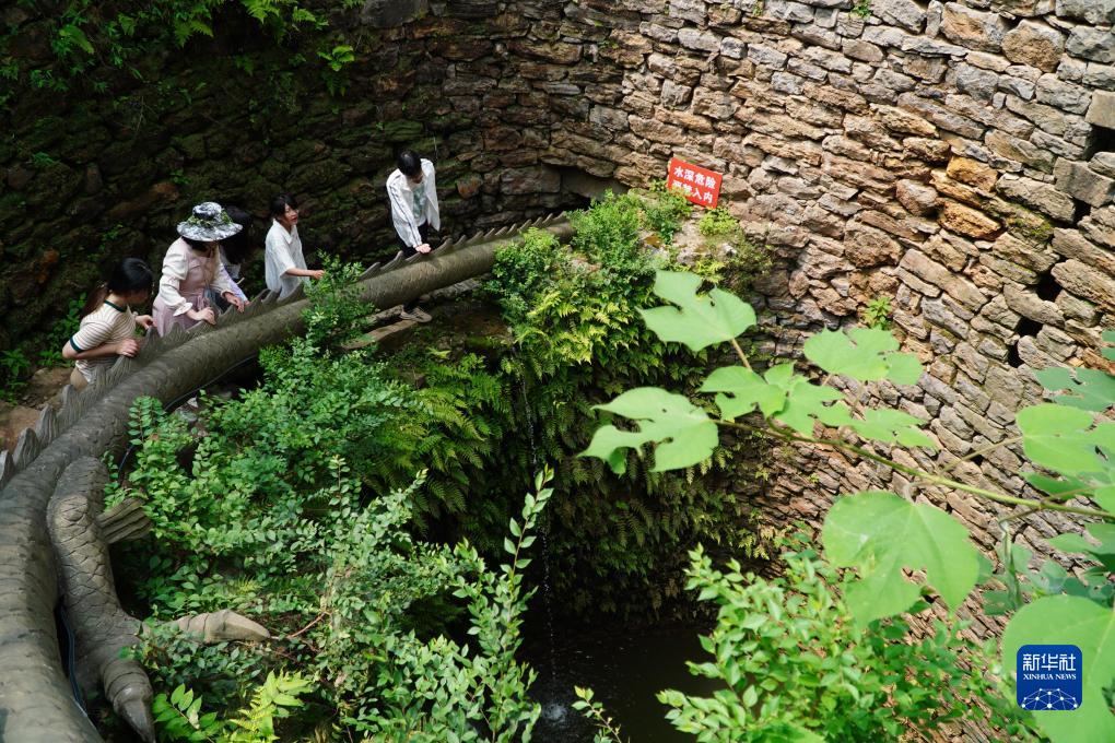 游客在位于山東省新泰市龍廷鎮的掌平洼井游覽(7月26日攝)。