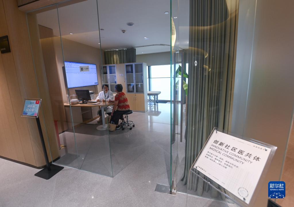 在嘉興市南湖區余新鎮漁里未來(lái)社區“向日葵親子小屋”的社區醫共體功能區內,居民們可以得到基本的醫療服務(wù)(7月27日攝)。