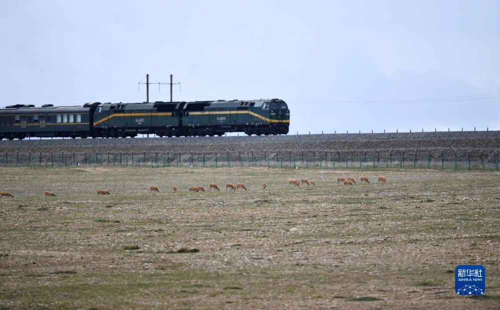 7月28日,一群藏羚羊在青藏鐵路沿線(xiàn)活動(dòng)。