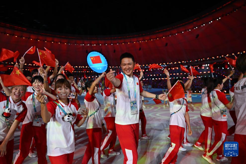 7月28日,中國大學(xué)生體育代表團在開(kāi)幕式上入場(chǎng)。