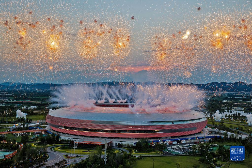 當晚,第31屆世界大學(xué)生夏季運動(dòng)會(huì )開(kāi)幕式在成都東安湖體育公園主體育場(chǎng)舉行。