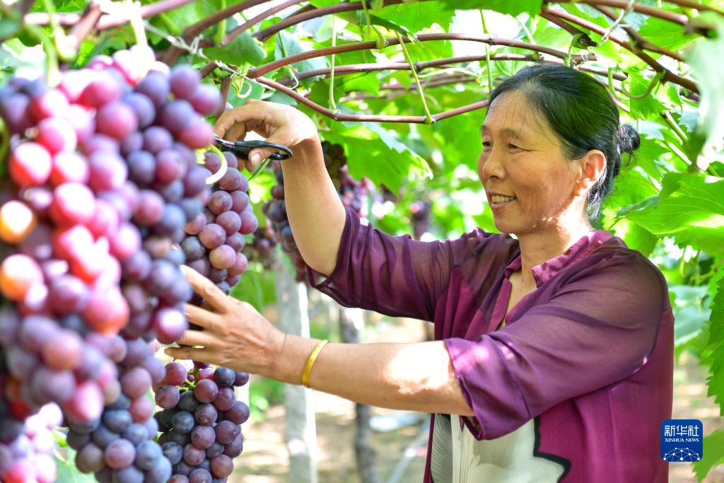 近日,江西省南昌市新建區金橋鄉葡萄喜獲豐收。