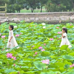 夏日,山西省太原市晉源區北大寺村的荷花競相開(kāi)放,吸引眾多游客前來(lái)觀(guān)賞。