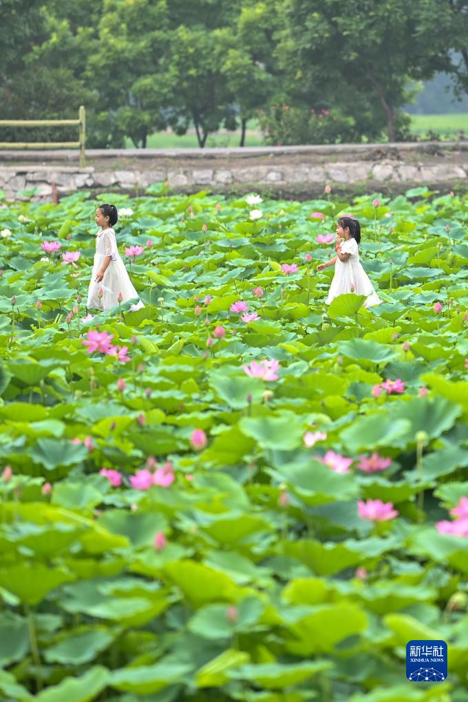 夏日,山西省太原市晉源區北大寺村的荷花競相開(kāi)放,吸引眾多游客前來(lái)觀(guān)賞。