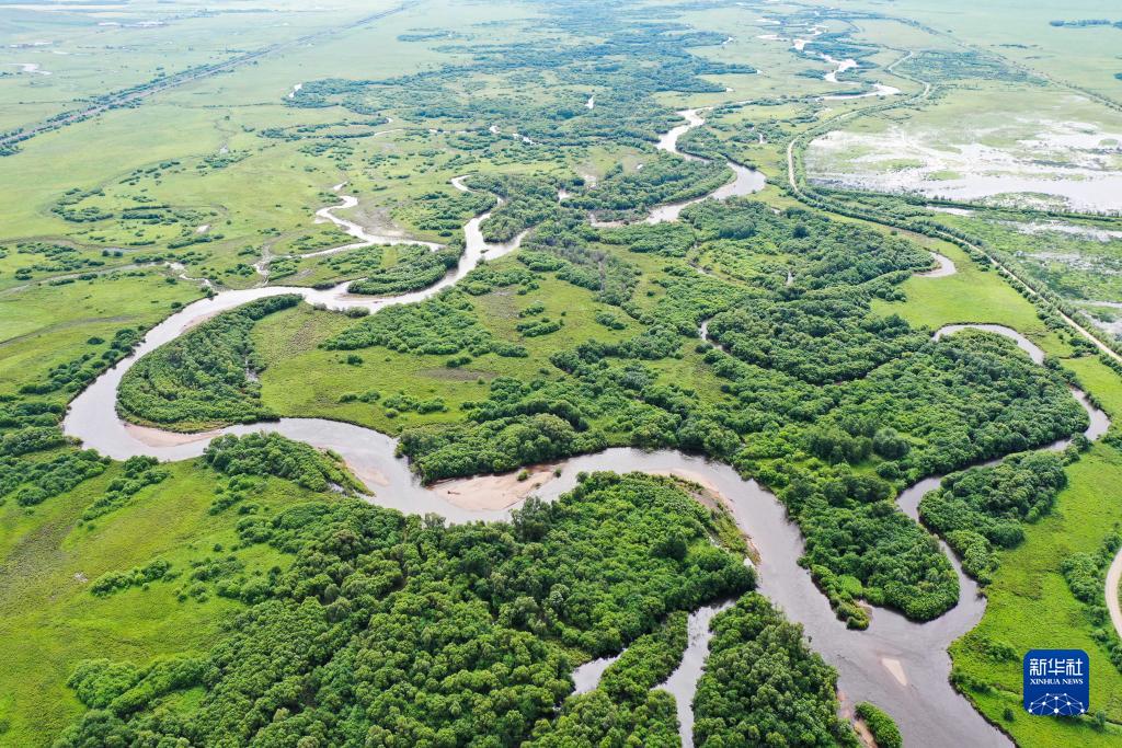 這是7月29日拍攝的免渡河國家濕地公園景色(無(wú)人機照片)。