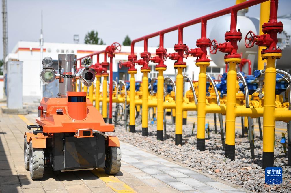 智能巡檢機器人在中國石油長(cháng)慶油田第五采氣廠(chǎng)蘇東—8集氣站進(jìn)行日常巡檢(7月26日攝)。