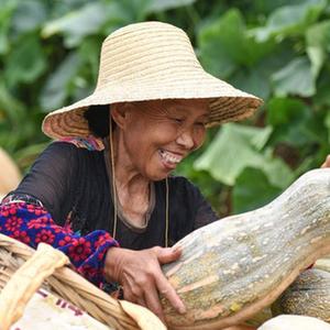7月29日,農民在貴州省銅仁市松桃苗族自治縣大路鎮和平村采收南瓜。