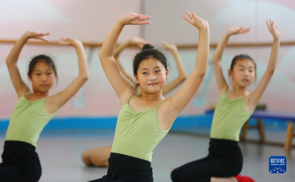 7月29日,在山東省滕州市一家舞蹈培訓機構,孩子們學(xué)習舞蹈。