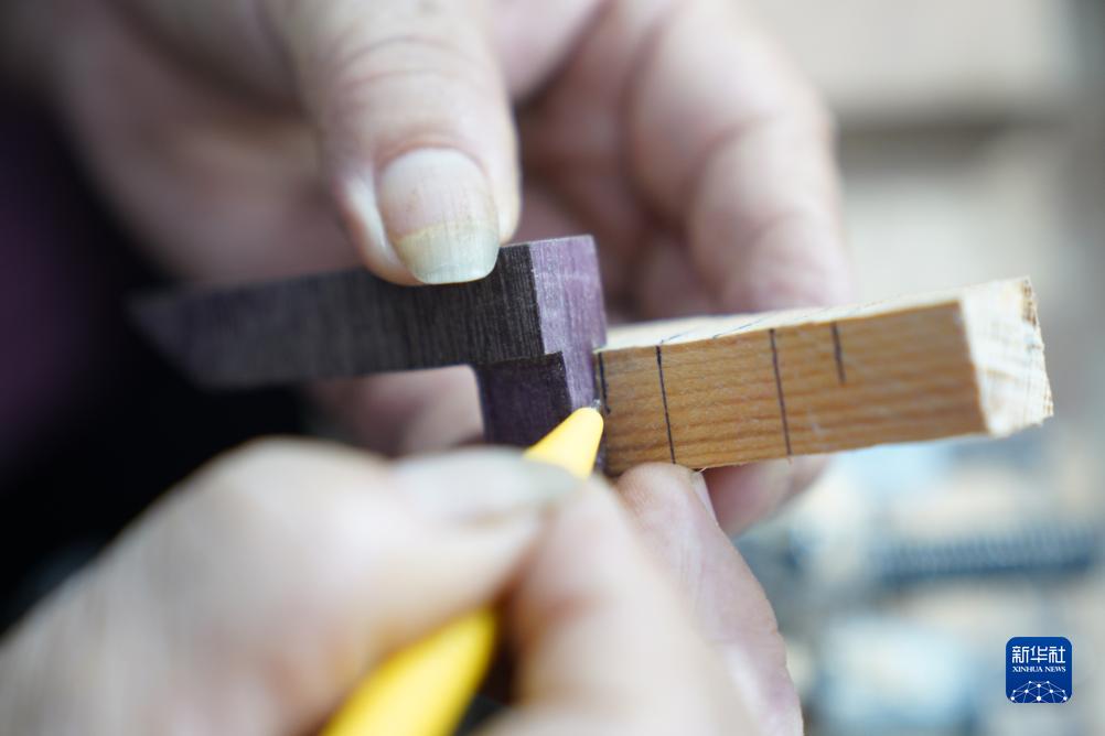 7月30日,侯全辰在工作間內制作孔明鎖。