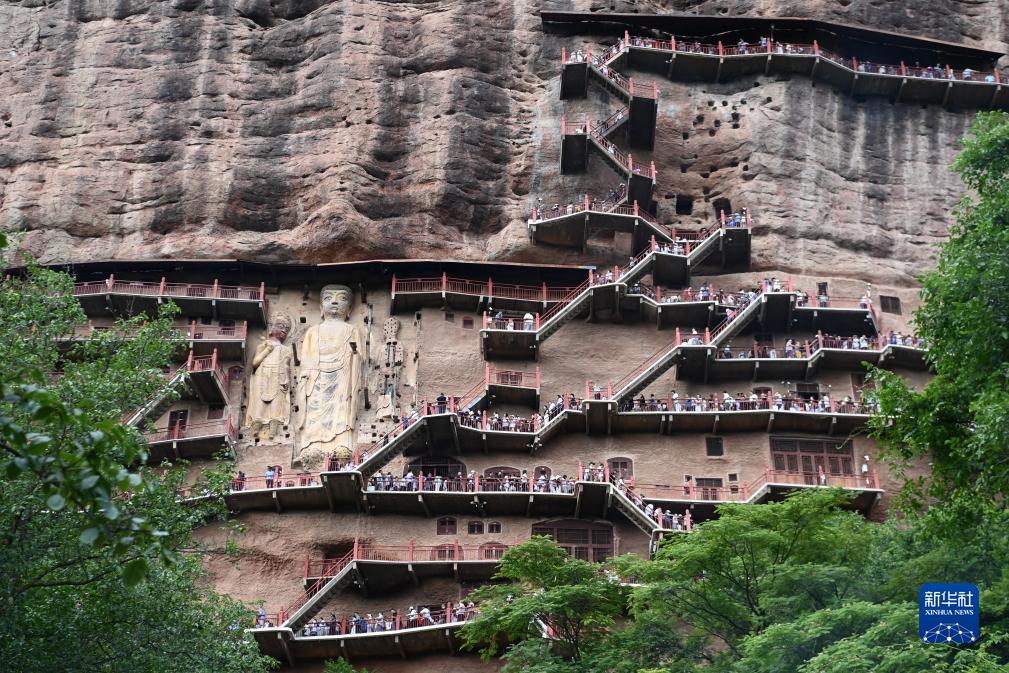 7月30日,游客在麥積山石窟參觀(guān)游覽。