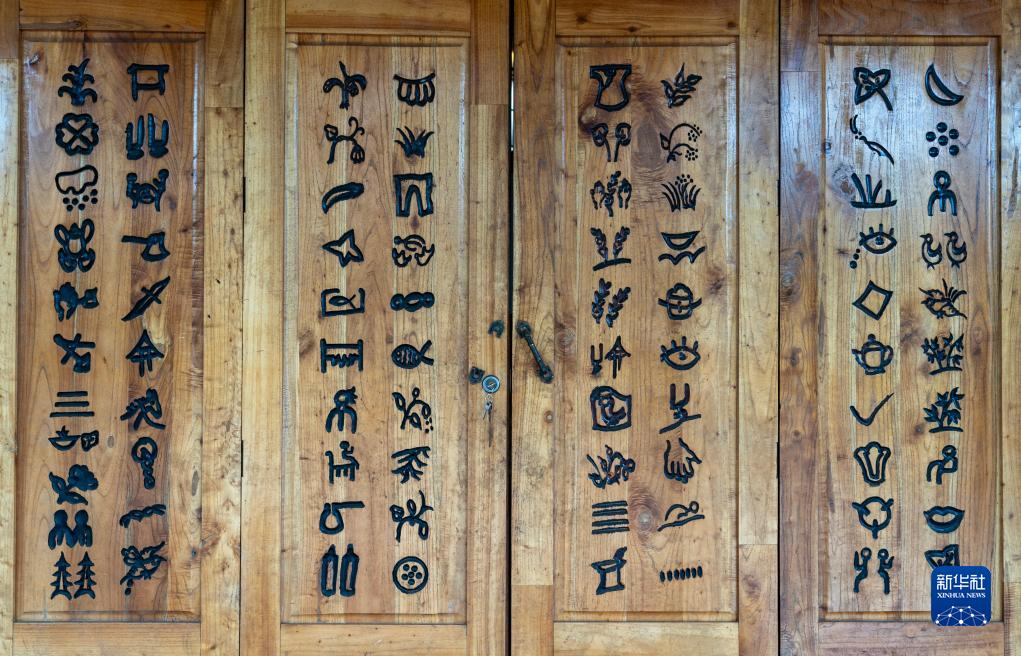 這是7月30日拍攝的刻在坡芽村坡芽傳習館門(mén)板上的81個(gè)“坡芽情歌”圖畫(huà)符號。