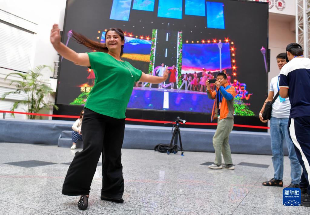 當日,在烏魯木齊參加第六屆中國新疆國際民族舞蹈節的塔吉克斯坦羅拉國家功勛歌舞團走進(jìn)新疆藝術(shù)劇院,雙方演員在音樂(lè )、舞蹈等方面進(jìn)行交流,展示絢麗多姿的風(fēng)采。