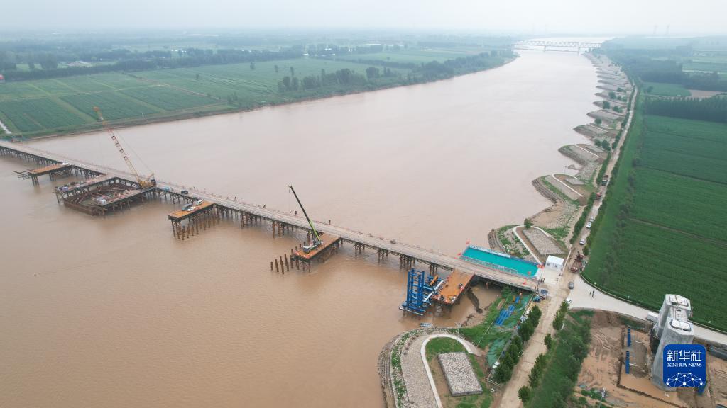 7月31日拍攝的雄商高鐵黃河特大橋主橋施工現場(chǎng)(無(wú)人機照片)。