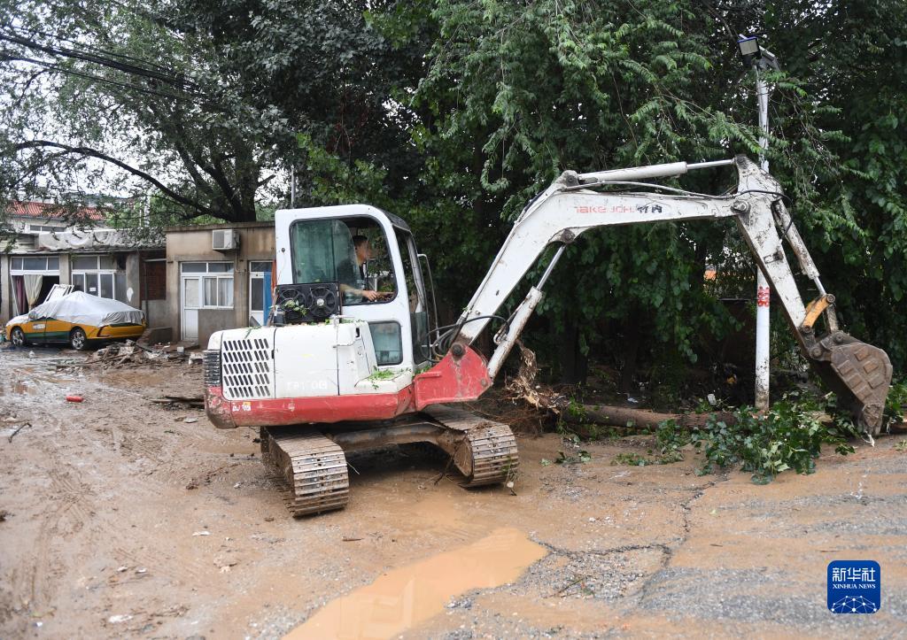8月1日,在北京市房山區青龍湖鎮上萬(wàn)村,工作人員清理倒伏樹(shù)木。