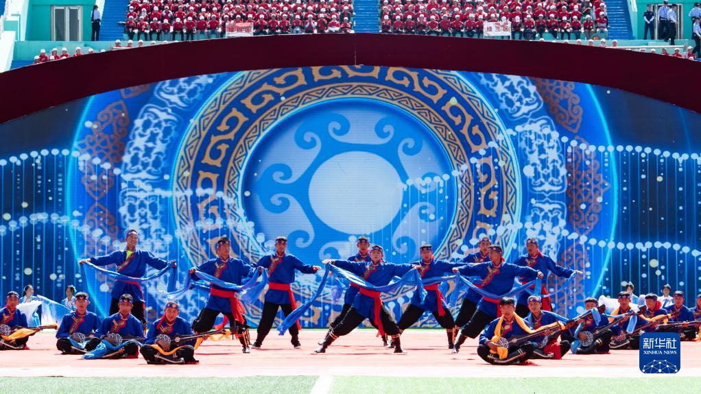 8月1日,當地群眾在海南藏族自治州成立70周年慶祝大會(huì )上表演節目。
