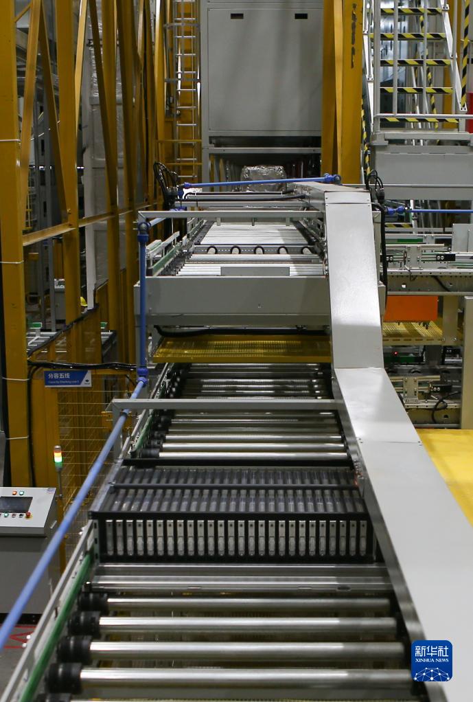 這是8月1日在襄陽(yáng)比亞迪產(chǎn)業(yè)園拍攝的動(dòng)力電池檢測流水線(xiàn)。