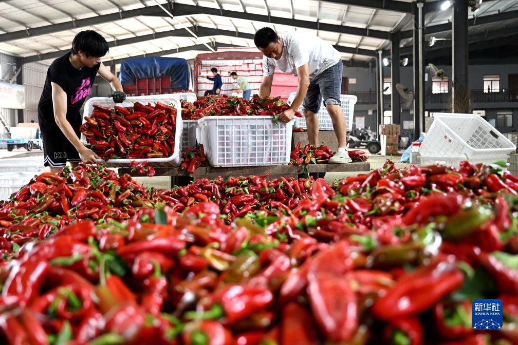 近日,安徽省蚌埠市五河縣朱頂鎮陳臺村的3000余畝辣椒迎來(lái)收獲季,村民們忙著(zhù)采摘、搬運、裝車(chē),一派喜人的豐收景象。近年來(lái),安徽省蚌埠市五河縣朱頂鎮積極調整農業(yè)產(chǎn)業(yè)結構,采取“合作社+農戶(hù)+市場(chǎng)”的模式,結合市場(chǎng)需求種植特色辣椒品種,帶動(dòng)當地農民增收致富。