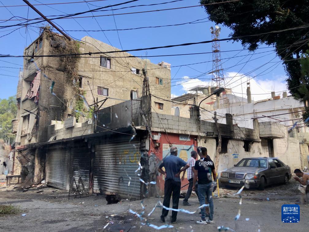 8月1日,在黎巴嫩南部西頓市附近的艾因·哈勒瓦難民營(yíng),幾名巴勒斯坦男子查看財產(chǎn)受損情況。