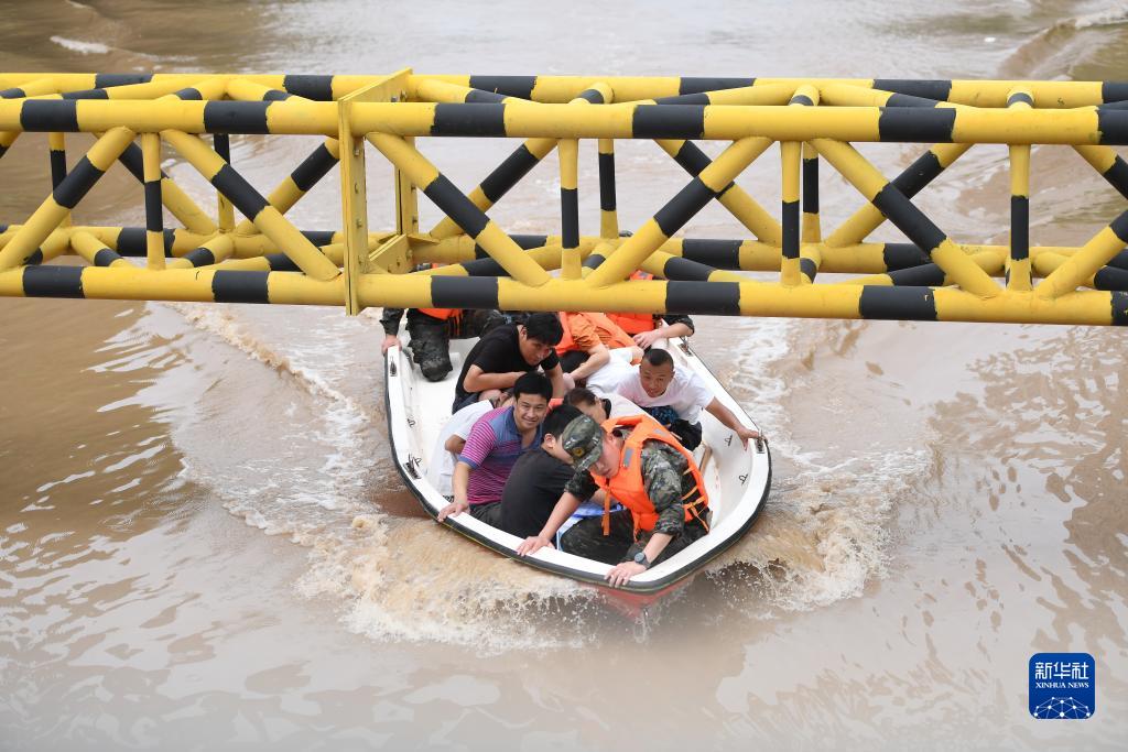 8月2日,救援人員在河北省涿州市市區內轉移群眾。