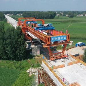 8月2日,架橋機在菏蘭高鐵蘭考特大橋上進(jìn)行箱梁架設作業(yè)(無(wú)人機照片)。