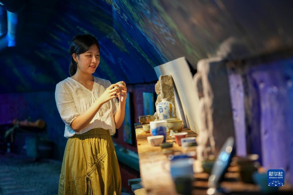 8月2日,一名女孩在重慶市九龍坡區黃桷坪街道的石頭房子藝術(shù)空間欣賞各色手工藝術(shù)品。